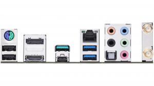 Zezadu má počítač konektory 1x USB 3.2 (20Gbps, 1x typ C), 1x USB 3.1 (10Gbps), 2x USB 3.0 (5Gbps), 2x USB 2.0, 1x PS/2, 2,5x Gbit síť, optický výstup a Jack konektory pro až 7.1 reproduktory, výstupy případné integrované grafiky (HDMI, DisplayPort).