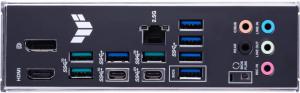 Zezadu má počítač konektory 1x USB 3.2 (20Gbps, typ C), 4x USB 3.1 (10Gbps, 3x typ A, 1x typ C), 5x USB 3.0 (5Gbps), 1x 2,5Gbit síť, Jack výstupy pro až 7.1 reproduktory, výstupy integrované grafiky (HDMI, DisplayPort).