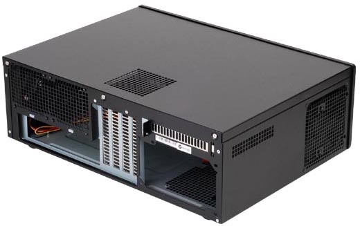 Desktopová skříň pro mATX desku s luxusním čelem z broušeného hliníku. Na čelním panelu jsou vyvedeny 2 konektory USB a audio konektory (sluchátka a mikrofon).