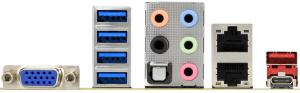 Zezadu má počítač konektory 1x USB 3.1 (10Gbps), 4x USB 3.0 (5Gbps), 2x Gbit síť, 1x VGA, Jack výstupy a optický výstup pro až 7.1 reproduktory.
